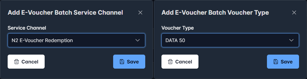 After creation of an E-Voucher based Voucher Batch the Voucher Types and Service Channel configuration becomes available.